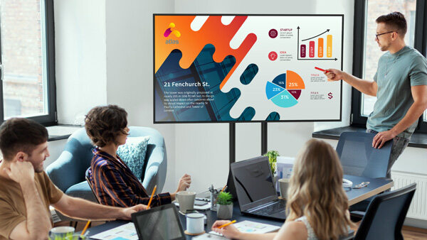 Sharp MultiSync® E9-serien (32" til 86") er utviklet for moderne forretningsmiljøer. Enten det gjelder presentasjoner, digital skilting i butikk eller intern bedriftskommunikasjon, gir E9-serien deg et profesjonelt fortrinn – uten å sprenge budsjettet.